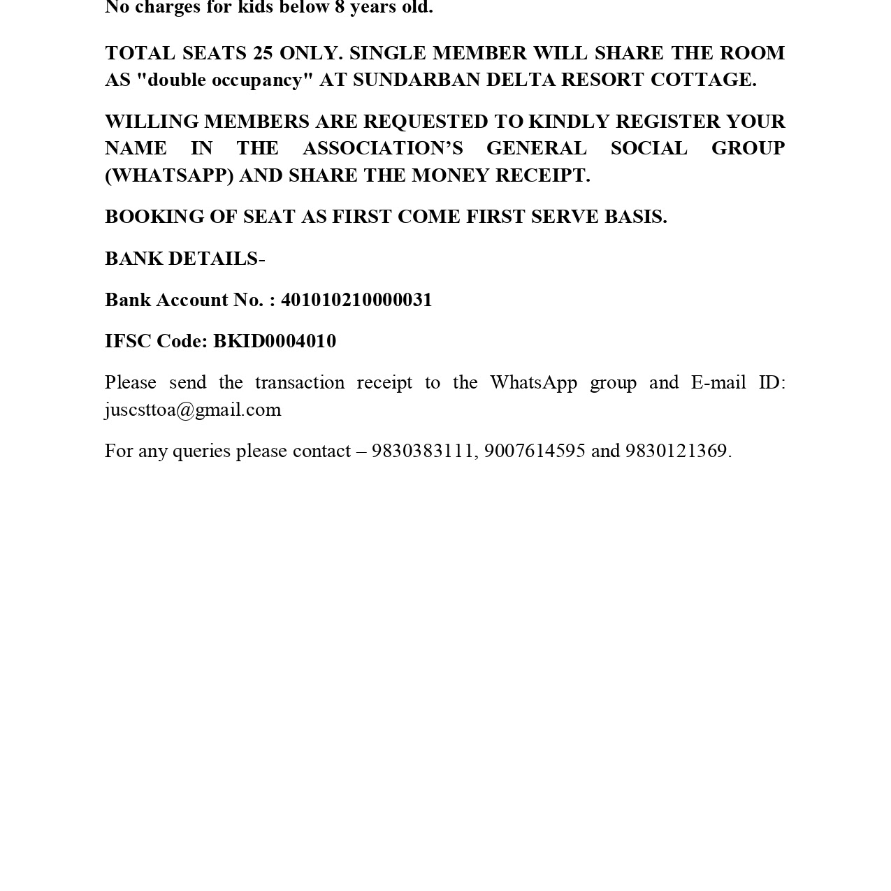 All correspondence regarding payment may be addressed to the Hony. Treasurer, JUSCSTTOA, Room No-103, TEQIP Building, Jadavpur University, Kolkata 700032.
